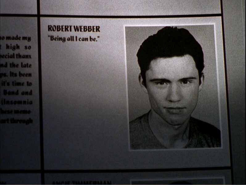 "Bobby W.," huh? I made a beeline for the very back of the book. I found a Dean Walker; a Bart Wear...and, finally, a Robert Webber. Black curly hair, handsome in a James Dean kind of way...but I remember those eyes most of all. They burned with an unsettling fire...They leant an intense, bordering on insane, aura to his features. Did he aspire to the Army as a means of controlling his unstable impulses...or feeding them? The second seemed more likely. (By the by, I never went for that whole "you're mine" thing so common in teenage love stories. It always manages to end badly.)