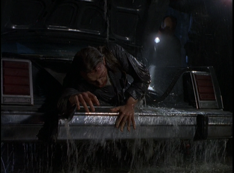 ...Actually, the episode is also playing with another narrative, that of "the killer from the hero's past returns and starts killing again." Considering that this is Millennium we're talking about, there's a twist: The killer is the victim this time around, having nearly drowned in the trunk of a sinking car.